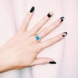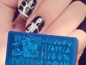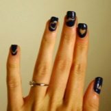 Шаблон је главни уређај за стварање популарне новости: маникир у техници негативног простора. У овом случају потребна је само једна боја лака или гела. Шаблон се не користи за осликавање унутрашњег подручја контрастном бојом, као што је то обично случај. Напротив, уз помоћ шаблона, унутрашње подручје остаје празно. Ефекат изреза ствара се на одећи.