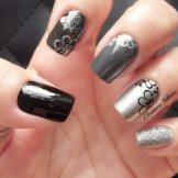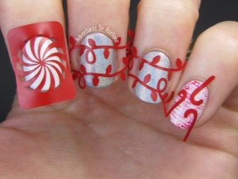 Стварање свечане маникуре сликањем сјајем и метализованим материјалима неће моћи без бојања на екрану. Златни и црни монограми су погодни за креирање уз помоћ различитих дезена заснованих на голим тоновима. Тематска маникура за Нову годину често се ствара помоћу образаца у облику пахуљица или сложенијих образаца: сњеговић, божићна дрвца, Дјед Мраз. Често користите узорке мајстора и да бисте креирали дизајн ноктију за Дан заљубљених. Обојена срца, пољупци и голубови цветају на ноктима већине девојака у земљи.