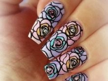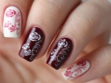 - Прво одаберите шаблон са сликом руже. Одабиремо двије контрастне боје лака или гела. То могу бити не само класичне црне и црвене боје, већ и ружичасто-беле, беж са златним и било које друге комбинације.
