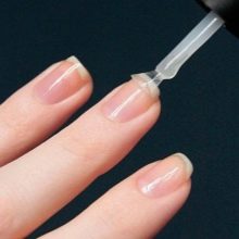 - Након стандардне маникуре, нокатне плоче прекривамо базом. Осушите их минут испод лампе.