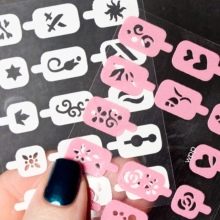 Винилне шаблоне у облику наљепница су једнократне могућности. Њихов трошак је нешто виши, а неке мајсторице успевају да их користе више пута. У поређењу са папирним колегама, оне имају значајне предности. Такви шаблоне боље се уклапају на нокат и практично не стварају могућност да мастила процури изван граница обриса шаблона на слици. Много је лакше равномерно поставити се на нокатну плочу.