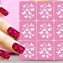 Потребан вам је шаблон за стварање глатких, јасних, уредних узорака. Исто ће бити и за маникуру на свим ноктима или може варирати у величини цртежа. Ако не знате како цртати, или ако вам рука још није довољно добра, мајстори препоручују употребу шаблон технике за наношење узорака за украшавање ноктију.