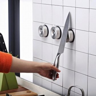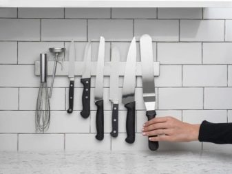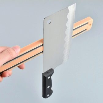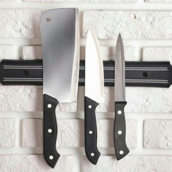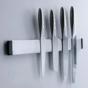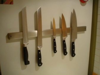 Магнетни држач је практичан по томе што не требате да стављате ножеве у њега, већ само подложите оштрице. Вриједно је напоменути да ово радите јако обесхрабрујући, јер нож може да исклизне. Увек морате бити сигурни да је уређај чврсто фиксиран на магнет.