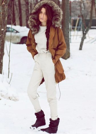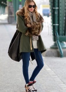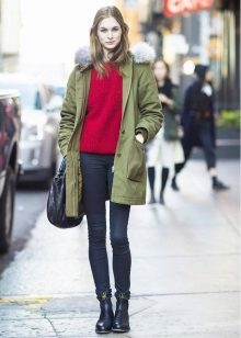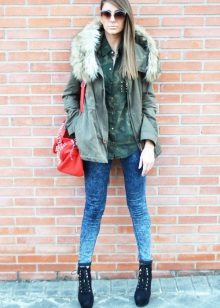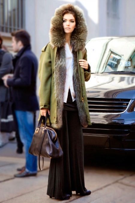 Модни врхунац је парк са крзном или крзненом облогом контрастне боје: јарко љубичаста, ружичаста, плава, жута, наранџаста.