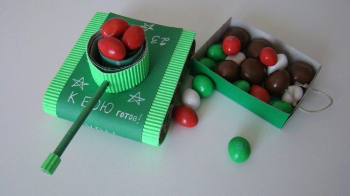Можете дечацима пружити читав "војни" сет - термос, батеријска лампица, виљушка, кашика и вишенаменска звиждука са компасом и термометром, упаковани у елегантну футролу од какија. Ако би поклон требао бити мањи, онда можете скренути пажњу на оловке "3 у 1", уједињујући себе хемијска оловка, лампица и ласерски показивач, поред које се купује свеска са тематском сликом. Ако родитељи не сметају, онда то има смисла стећи тематска играчка. Алтернативно, може се испоставити да је то тако мач, пушкомитраљез, пушка, водени пиштољ или војна кацига. За старије дете већ погодно оклопни транспортер или ватрогасно возило.