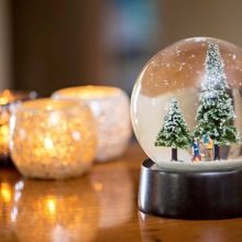 - Стаклена кугла са снегом. Поларни медведи, весели сњеговић или крзнене божићне јелке у вртлогу плесачких пахуљица несумњиво ће створити свечано расположење.