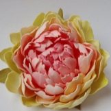 - Даље, можете ићи на формирање пупољка божура. Можете то учинити величанственим или створити осећај да је тек почео цветати. Лепите обруб што је чвршће и сигурније на припремљену базу, умотавајући је у мали ваљак. Ово је срж пупољка божура. Закључајте цветне латице. Латице треба да буду смјештене што ближе једна другој, попут праве биљке у природним условима. Најприје морате поправити тање, унутрашње латице, а затим велике, спољашње елементе.