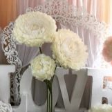 - Биће потребна велика количина материјала направити шик божур из раста, који има елегантан, величанствен пупољак великих димензија. Огромно цвеће може бити распоређено у букету или одвојено. Често ове компоненте украшавају унутрашњост ансамбла или допуњују фото зоне - на њиховој позадини можете направити врло оригиналне и цоол фотографије.