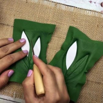 - Са зелено лишће човек мора да учини исто. Преклопите их на пола, истегните средину. Повуците врхове, мало их увијте.