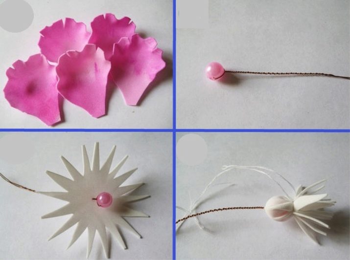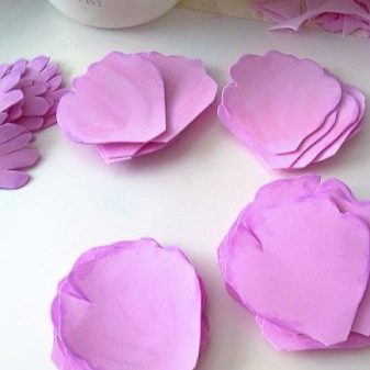 - Да би пупољци цветова фоамирана изгледали сјајније и оригиналније, за израду њихових латица вриједи користити материјал различитих боја. Као резултат, пупољци ће испасти светли, засићени и привући ће пуно пажње.