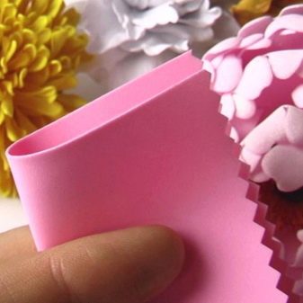 Картонске траке заокружите на љубичасти фоамиран. Кад их исечете, сваки се мора претворити у обруб. Од ње ћете и направити срка пеонија. Након тога биће припремљен узорак божура. Латицама се дозвољава да се благо нијансе љубичасто, додајући им додатне нијансе.