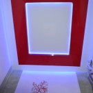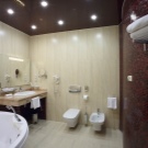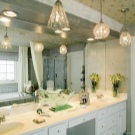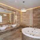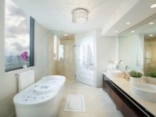 Стога, ако ваше купатило има велику површину, размислите о уградњи висеће лампе. У комбинацији са растезљивим плафоном, лустери се такође користе како би нагласили његов дизајн. (на пример, са вишеслојним растезљивим плафонима).