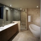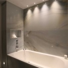 Често се дешава да купељ одвоји остатак простора преградом. Тада се у зони купатила (површина ове зоне обично износи 4 квадратна метра) препоручује се постављање две лампе поред главног светла.