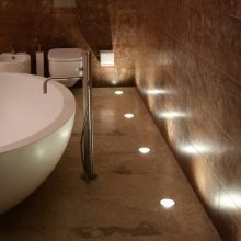 Монтажа светлосних елемената, важно је узети у обзир висок ниво влажности у соби. Приликом одабира лампе узмите у обзир ниво отпорности на влагу, који је наведен у облику обележавања на паковању лампи (ово можете занемарити ако говоримо о добро познатом бренду са потврђеним квалитетом производа). Вриједност овог нивоа мора бити одабрана најмање 4.