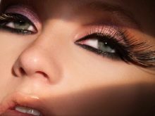 - И још један пример како „мачје око“ мења црте лица. Око "подигнуто", изгледа мање уморно, боја трепавица добро изгледа уз обрве. Боја очију је повољно наглашена због накупљања.