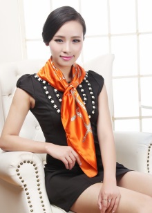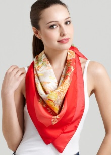 - Ако је избор свиленог мараме повезан са неким потешкоћама, тада увек можете одабрати обичну опцију. Ови шалови су класика која комбинује једноставност и елеганцију. Свила има могућност лепог драпирања, тако да ће и најједноставнији додатак изгледати занимљиво.