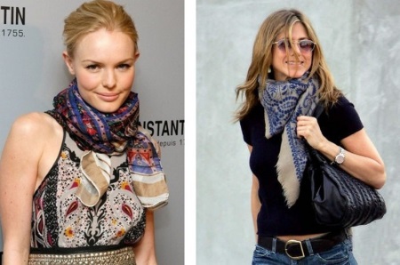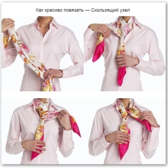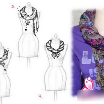 - Свила има могућност клизања, па је начин на који носе такав прибор и не исправљају га током дана. Мора бити правилно везан. Шал се мора преклопити на пола, бацити преко врата, а крајеве ставити у формирани прстен.