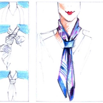 - Ако шал треба складно унијети у пословну слику, може се везати попут кравате. На једном крају мараме морат ћете направити чвор, на другом ћемо ставити слободан крај у овај чвор и прилагодити прибор по вашој жељи.
