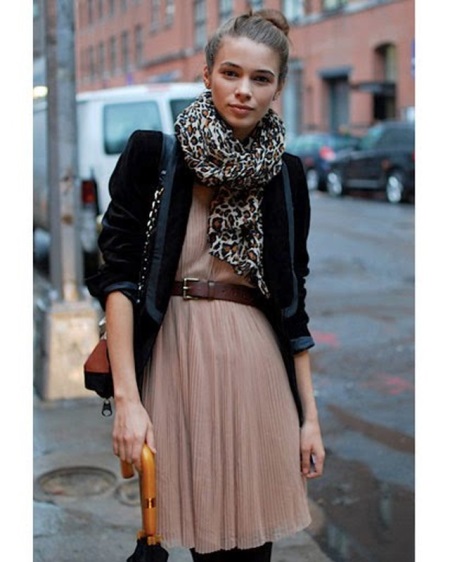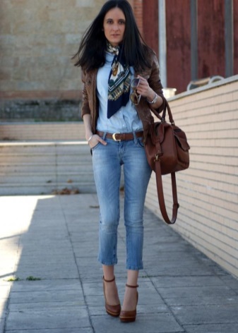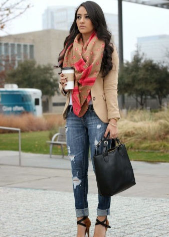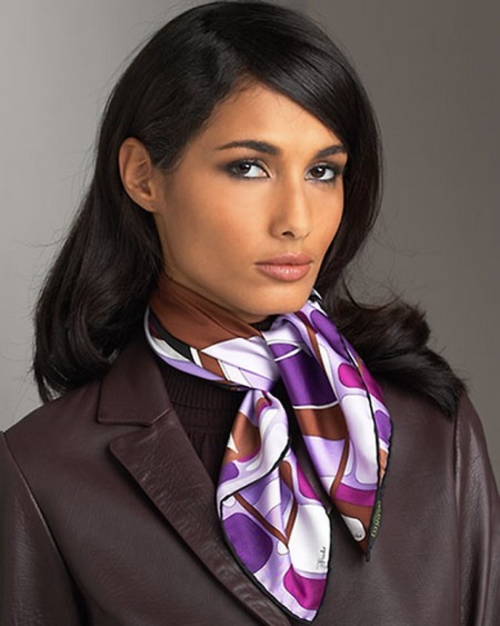 Пословне жене могу користити овај прибор да своје лијепе, али строге погледе претворе у занимљиве лукове. Да бисте то учинили, прикладан је мали шал од свиле који се може ставити на врат у облику француског чвора, цхокера или слободно пасти, тече на строгу јакну.