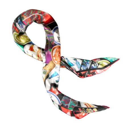 - Отисци у облику тетоважа и у стилу старе школе чине свилене шалове екстравагантним и врло необичним. Такав је прибор тешко уклопити у слику, али изгледа смело и што је необичније.