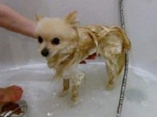 - Водни третмани. Након што навлажите цело тело кућног љубимца, нанесите мало шампона на спужву или крпу и равномерно га нанесите равномерно по целој дужини косе. Затим га прстима мало пенајте и проверите да нема запетљања.