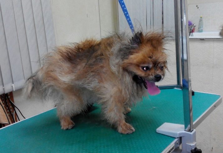 - Поновни раст косе. Дуга коса јасно спречава животињу да се мирно трчи и игра. Ово се посебно односи на шпиц Спитз, у којем је коса толико дуга да може ометати кретање.