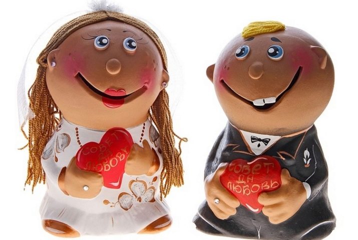 И на крају, најлакши, али не мање оригиналан начин давања новца биће купња два пара свиња (на пример, у облику мачке и мачке) и напуните их новчићима од десет рубаља до врха. Обично се такви поклони перципирају и прасе се. Да пар у младости не би бесмислено донирао новац за све непотребне ствари, можете да отворите депозит у банци на период од једне до неколико година. Овај приступ је најпрагматичнији и омогућава вам да повећате износ за период који ће вам бити од интереса.