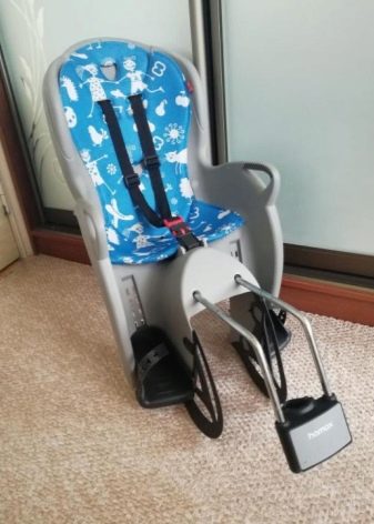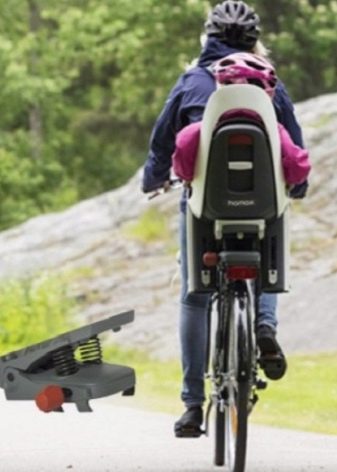 - Ово дечије седиште се најчешће поставља на пртљажник бицикла (његова ширина не сме бити већа од 180 милиметара). Држач је брзо одвојив. Само седиште је доступно заједно са меким јастучићима који пружају максималну удобност за децу током кретања.