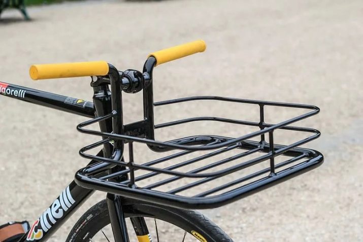 - Корпа. Ова врста чизме идеална је за градске бицикле. У њега можете смјестити купљене производе или ствари за које је потребна стална пажња (гадгет, камера итд.). Са таквим носачем бицикла много је сигурније возити. Паковане куповине није потребно да висите на управљачу, који током кретања може пасти у жбицу предњег точка и проузроковати да падне или једноставно пукне током кретања.Корпа се широко користи због практичности и на женским бициклима.