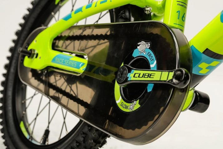 - За дечији дизајн је важан елемент доступност заштите ланца бицикла. У правилу је метална плоча. Ова компонента смањује ризик од трауматичних ситуација, као и проблема са оштећењем одеће.