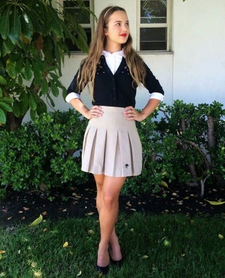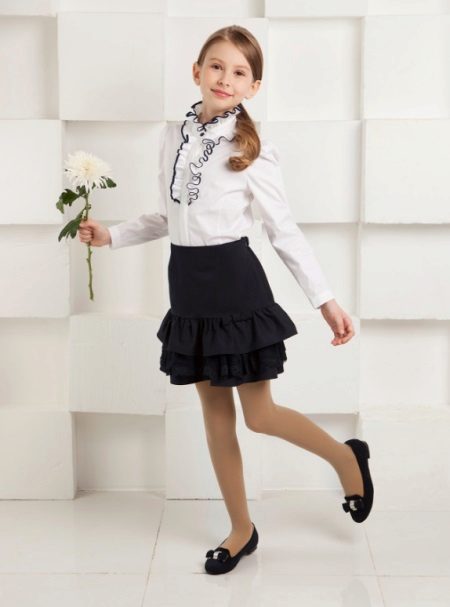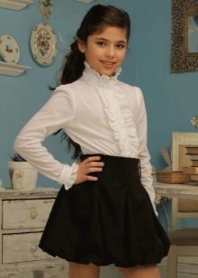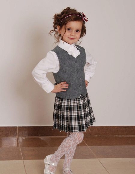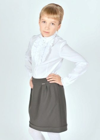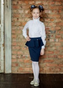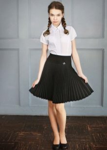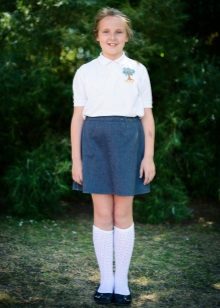 За најмање ученице препоручује се одабир широких сукњи које не ометају покрете. Најбоља опција је напуштена полускода или сунце. Најприкладнија дужина за такве моделе је до колена или нешто ниже. Универзални модел је погодан за комбинацију са разним блузама, мајицама и корњачицама.