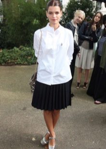 Прикладан, практичан, женствен модел савршено се комбинује са различитим опцијама за врх. Набори могу бити широки и уски, дуги или дјеломично шиљасти. За такве сукње одабране су тканине које добро одржавају свој облик - вуна, памук. Сукња с набором добро се слаже с принтом у облику карира.