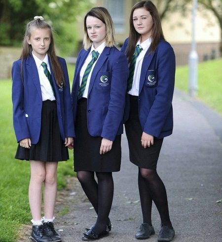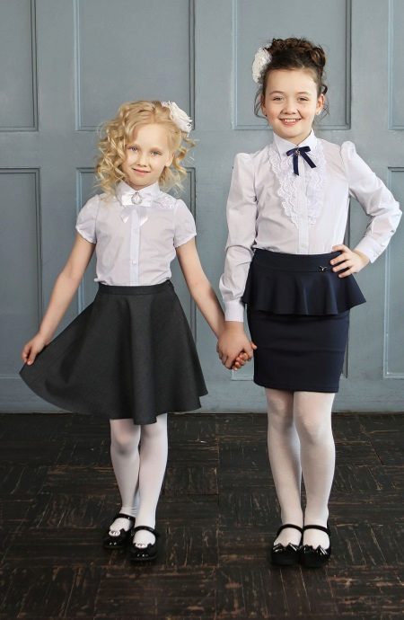 Школске сукње за девојчице различитих узраста могу значајно да се разликују. Ово се односи на дужину, стил, број украсних елемената итд.