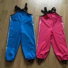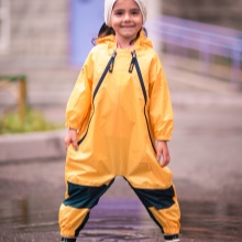 Overaller för barn är en super populär modell som föräldrar älskar.Sådana regnrockar sys i ljusa färger, vilket höjer stämningen, och barnet är helt skyddat även under hårt väder.