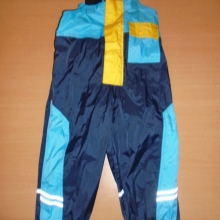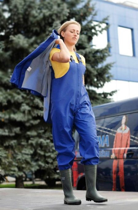 I vissa situationer är semi-overalls mer praktiska - byxor på remmar, vars ben dras ner från botten och förhindrar att vatten tränger in. Sådana modeller är bra om det inte regnar, men det är vått på gatan, och du måste gå i skogen eller i parken, arbeta i trädgården eller andra viktiga affärer.
