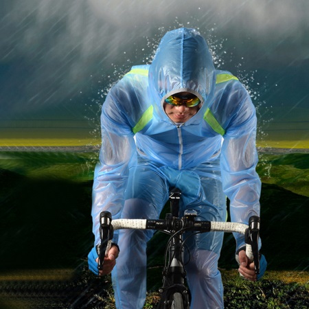 Det senare alternativet är bra efter regn - när droppar inte faller uppifrån kan du ta bort din jacka, kvar i dina byxor, vilket kommer att skydda mot fukt som flyger från asfalten. Med tanke på att regnrocken helt enkelt kan tvättas med rent vatten från en slang, är detta ett utmärkt alternativ för terrängkörning.