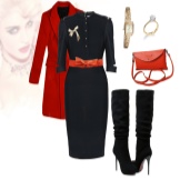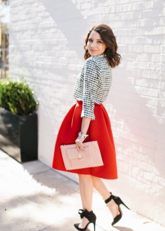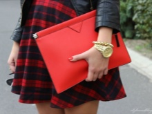 Ljus transformatorkoppling i läder passar perfekt in på kontorsstil.Om du bestämmer dig för att ta en röd koppling med dig är det bättre att måla dina läppar med röd läppstift, men det är bättre att lämna nagelfärgen naturliga.