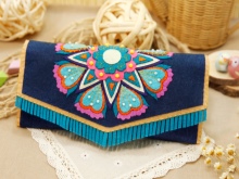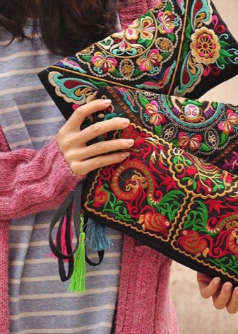 - En boho-koppling är ganska rymlig. Det kännetecknas av en brokig färg med olika etniska mönster.En sådan koppling bör bäras med lämpliga ljusa kläder.
