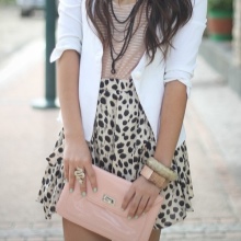 Kopplingar med ritningar kombineras bäst med vanliga kläder eller med vissa element i kläder, om än med ett annat tryck. Ett bra alternativ skulle vara om till exempel en leopardkoppling kombineras med leopardinsatser på kläder. En kopplingsväska med en skalle är perfekt för samma typ av tillbehör (örhängen, armband, ring eller kedja med en skalle). Men trycket med rosor kombineras inte med tillbehör. Med det måste du välja antingen en ring med en ros eller en koppling med den.