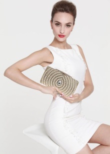 För en kopplingsväska med strass, med paljetter och stenar är en sådan klänning bäst lämpad, där det kommer att finnas, även om det är en liten, men en del av sådant dekorativt material.