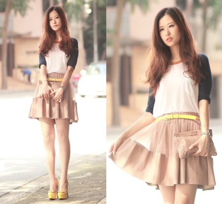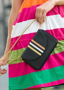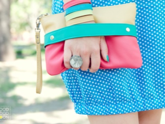 En koppling, som alla andra kvinnors tillbehör, bör vara märkbar och färgglad. Helst kontrasterar kopplingen i färg med baskläderna.