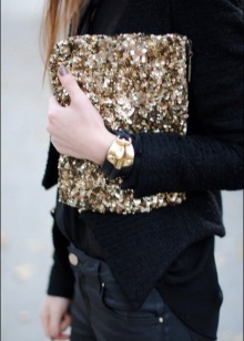 - Den teatrale kopplingen bärs bara i handen och skapades för att locka uppmärksamhet åt sig själv. Om du ser mer än en detalj på kopplingen, tveka inte: det hänvisar till det teatrala utseendet. Teaterkopplingen ska täckas med olika dekorativa element: stenar, pärlor, paljetter etc. Många tillbehör kombineras inte med en sådan koppling, så du kan överbelasta din bild för mycket.