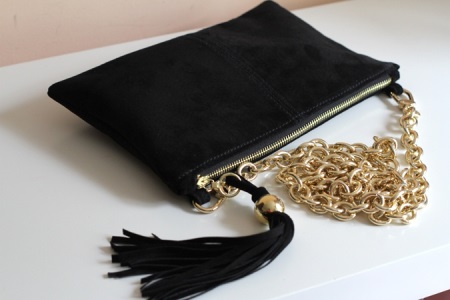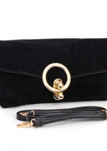 En mocka koppling ser bra ut med läderkläder. Det är tillrådligt att plocka upp en sådan handväska i färg för mockaskor. Att ta hand om det är inte så komplicerat som det verkar: bara köpa en speciell borste.