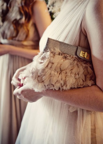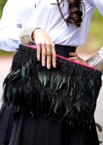 - En kvälls- eller semesterkoppling ska gå bra med resten av dräkten: antingen komplettera den eller vara en betoning på den. Detta alternativ är lämpligt för alla större helgdagar i livet: som examen vid examen och för bruden.
