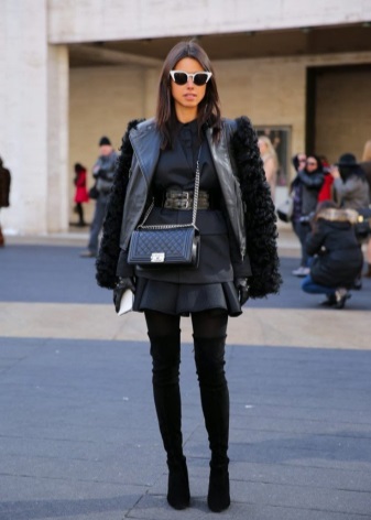 En koppling med spikar och en nit är bara lämplig tillsammans med samma skor eller ytterkläder av samma plan. Annars är det bättre att inte bära den, din bild kommer att se vulgär ut.