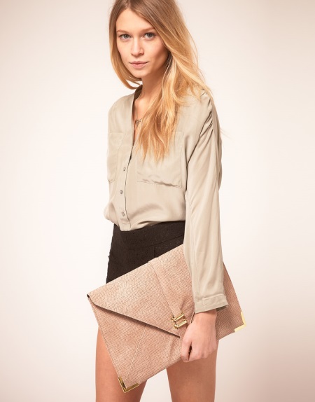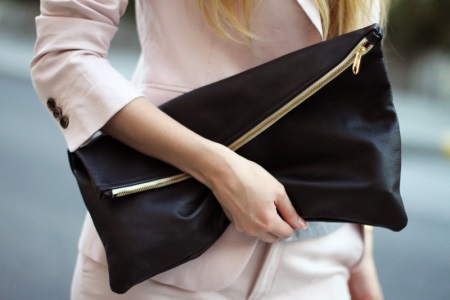 - Ett bra alternativ för en affärsdräkt är en kopplingsväska. Det måste väljas enligt färgens färg, så det kommer att utspäda den tråkiga kontorsstil, betona din kvinnlighet och inte sticker ut för mycket. Man bör komma ihåg att i vilket fall en sådan koppling inte är lämplig för dokument.