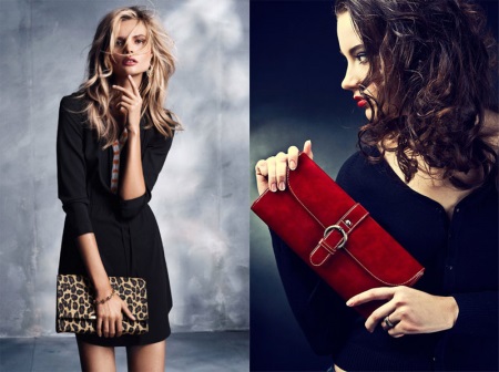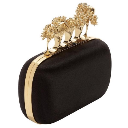 De mest slående och ovanliga kopplingarna finns i hyllorna hos det engelska varumärket Alexander McQueen. Det verkar som att handväskan hos denna designer inte passar med några kläder. Tvärtom. Dessa väskor kan bäras med en affärsdräkt. Förresten, ett kopplingshandtag i form av fyra ringar är idén med just detta märke.