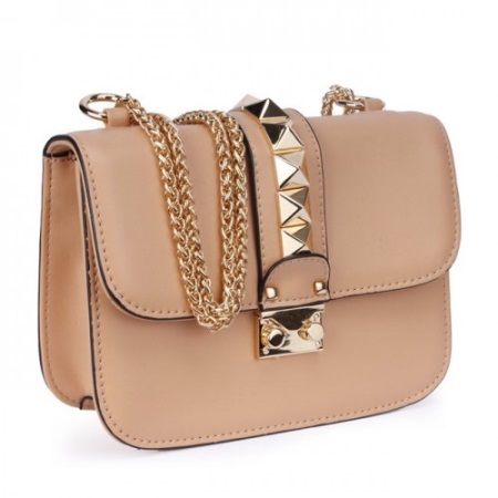 Valentino-märket har en anmärkningsvärd design: de flesta kopplingar har karakteristiska nitar eller ljust quiltmaterial.
