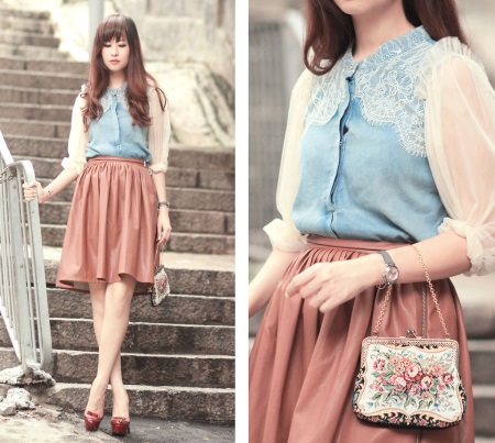 - Lås med lås är en vintage artikel. En gång var han inte populär bland designers, men idag använder de flesta modehus just en sådan handväska i sina show. Låset är en speciell vintage lås som sys till en redan färdig koppling. Den liknar två böjda bågar som är fästa ihop med två pärlor; denna koppling kallas också en kyss med en spänne. Det passar idealiskt bara för en vintage look.