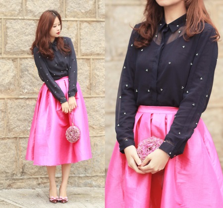 En rosa och turkos handväska är ett måste på sommaren. Det kommer att kombineras perfekt både med rockar och med en juka i golvet i olika färger och nyanser. Kopplingar i sådana färger är särskilt väl kombinerade med vita kläder. Detta alternativ är lämpligt även för affärsstil.